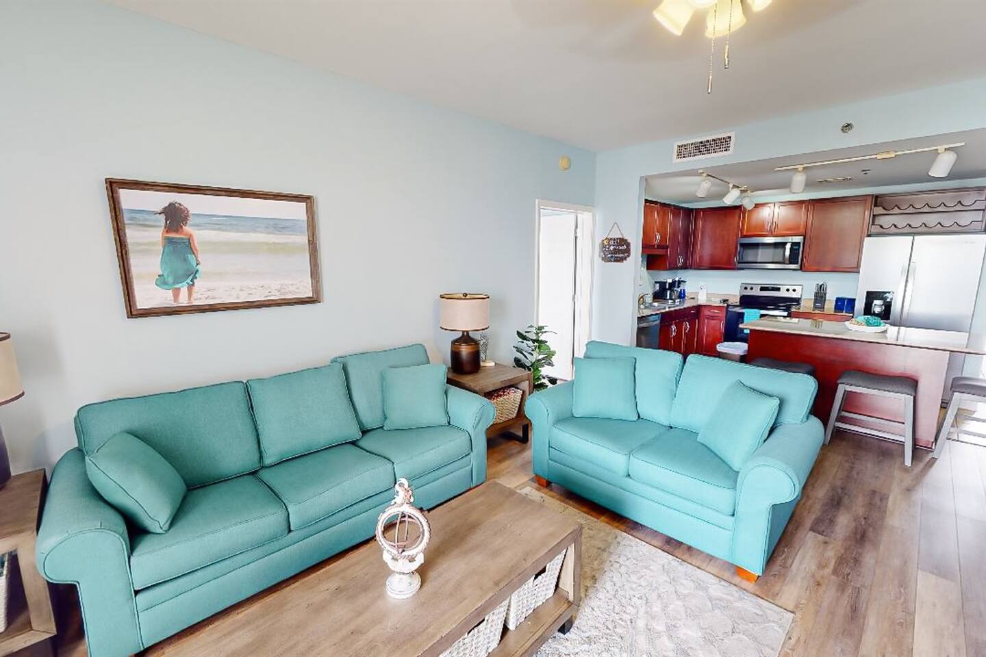 Complimentary Beach Service! Enjoy two beach chairs and an umbrella set up daily in front of Pineapple Willy’s from March 1st to October 30th. In our "Best Trip Ever" unit, relax in a spacious living room and step onto the balcony with patio furniture, overlooking the Gulf. The balcony is accessible from both the living room and main bedroom. The fully stocked kitchen with Island makes cooking easy, and you'll enjoy 55-inch Smart TVs in the living room and King bedrooms. High speed Internet!