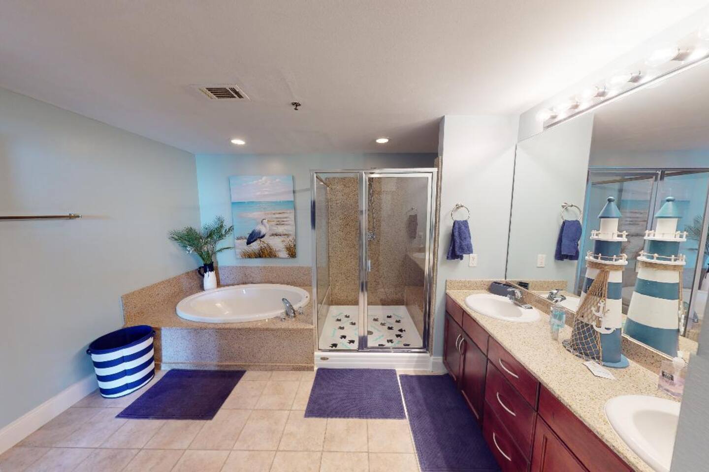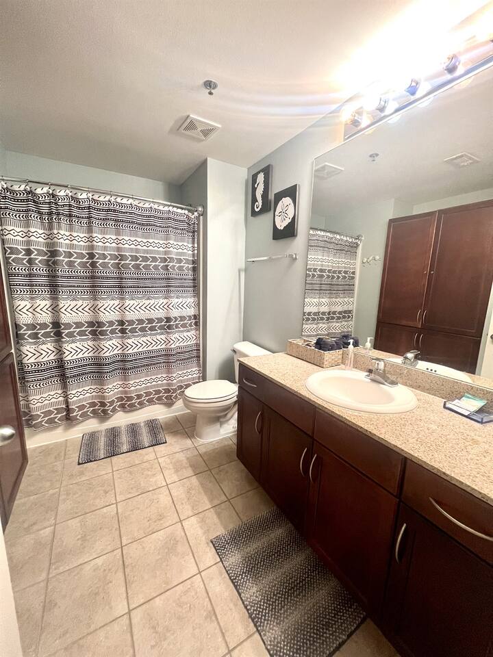 Spacious and Convenient This 4-bedroom, 3-bath condo sleeps 10 and features a fully stocked kitchen. Located right across the street from the Gulf of Mexico, it's the perfect spot in the heart of Panama City Beach. Enjoy easy access to the best shopping, entertainment, and dining. You'll also have access to five swimming pools, two hot tubs, a putting green, and a fitness room. Beach-Ready We provide a beach cart and 10 beach towels, so you're ready for a relaxing day by the water.