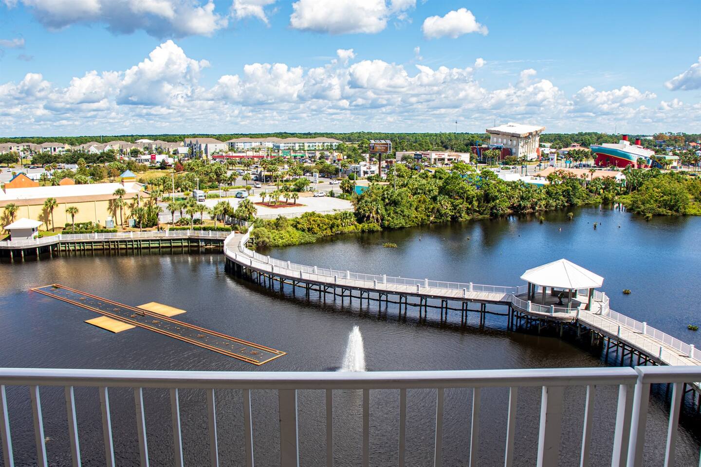 Northwest Florida Beaches International Airport (ECP) From I-65 South to Exit 114 Georgiana/Starlington go left HWY 55 to Andalusia HWY 55 to Florala go though Florala right on HWY 331 to DeFuniak Springs. Left on HWY 20 to Ebro HWY 79 to Panama City Beach left HWY 98, right at R Jackson Blvd. Left Hutchison Blvd. Right on Front Beach Rd. Left on Thomas drive. Laketown Wharf on the left. Check in show your reservation email to the guardhouse. Then go into the lobby, go to the preregistered guest line (The shortest and faster line) show ID they will give you your packet. Then parking with be in the North garage to your left. Go to the 6th Floor there is a walkover, so you do not have to use the elevators.